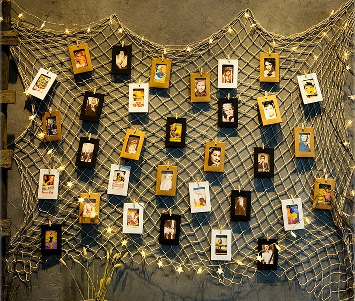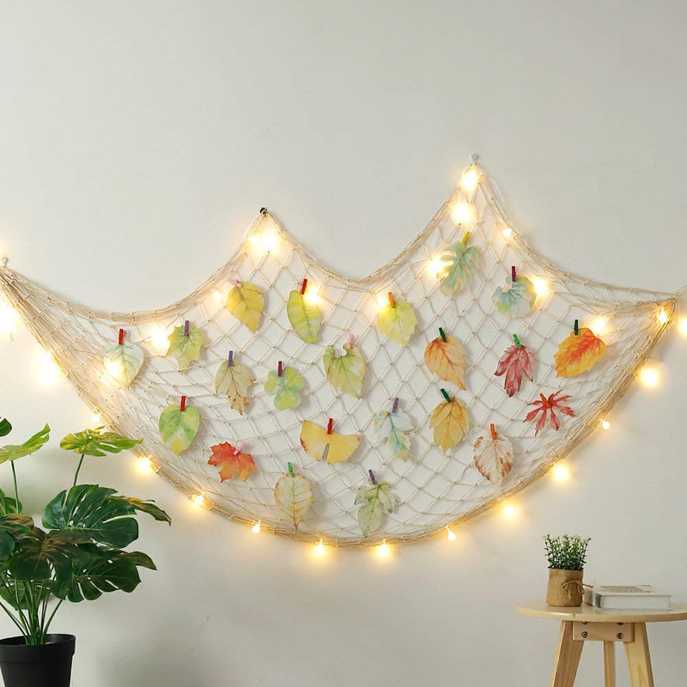 Rete Da Pesca Decorativa Da Parete Domestica Beige Per Appendere Foto Fornita Con 40 Mollette Lavoretti Di Bambini E Quadri Cornici Per Foto Prima Infanzia