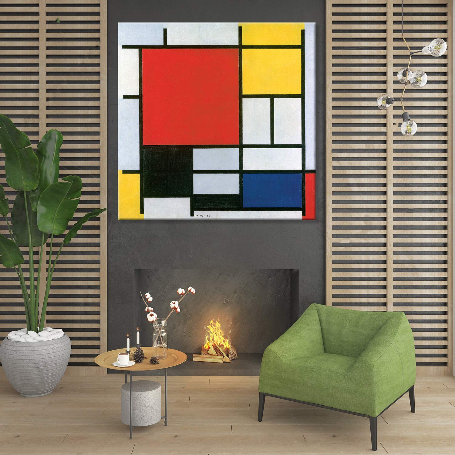 Tele Casa E Cucina Vari Formati Quadro Stampa Su Su Vetro Acrilico Plexiglass 50x50 Cm Piet Mondrian Composizione In Rosso Giallo Blu E Nero Pronto Da Appendere