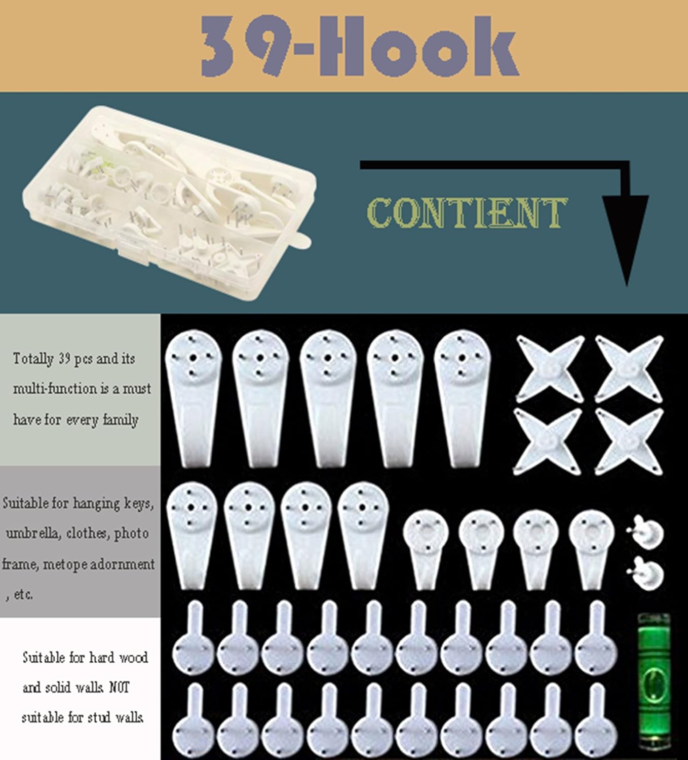 Besyee Maxhood Set Di Ganci Multifunzione Confezione Da 39 Pezzi Per Appendere Quadri Orologi Specchi Su Pareti In Muratura E In Cartongesso