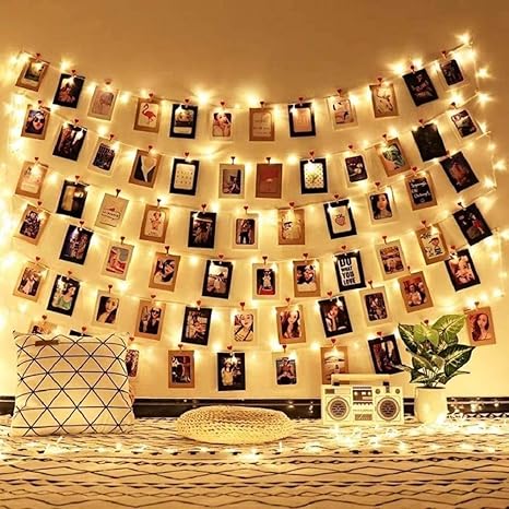 Meiguisha Striscia Di Luci Con Clip Per Foto Luce Bianca Calda 70 Led Con 50 Clip Trasparenti Per Appendere Quadri Perfetto Per Camera Da Letto Decorazione Da Parete Decorazione Per Matrimoni
