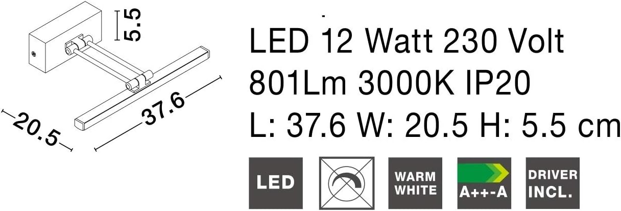Applique Luce Da Parete Per Sopra Specchio Bagno O Quadro Led 12w 3000k Ip20 Nichel Satinato Squadrato Moderno Orientabile Illuminazione Bagno Casa E Cucina