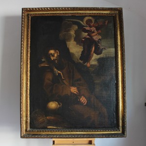 Antico Dipinto Olio Su Tela Raffigurante La Meditazione Di San Francesco Xvii Se Ebay