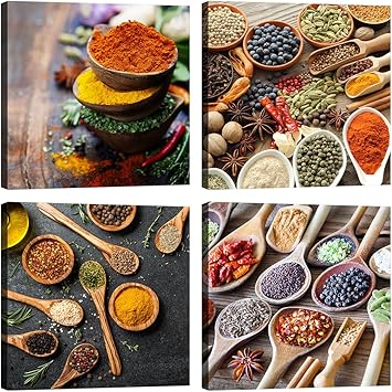Quadri Cucina Spezie 4 Pezzi 30x30 Cm Stampa Su Tela Con Telaio In Legno Arredamento Arte Arredo Moderno