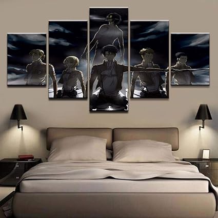 Senza Cornice Cynbb Stampe E Quadri Su Tela 5 Pannelli Anime Attack On Titan Character Poster Poster Hd Stampato Immagini Wall Art Home Decor Taglia A Mosaicovalencia Com