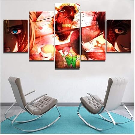 Cnbhhh Stampe E Quadri Su Tela 5 Pezzo Art Attack Su Titan Poster Dipinti Su Tela Wall Art Decorazioni Per La Casa Opere D Arte Murale No Frame Size A Amazon It Casa E
