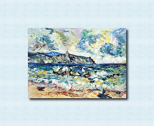 Quadro In Tela Da Arredamento Moderno Arte Contemporanea Arte Moderna Dipinti Colorato Per Ambiente Luminoso Fatto A Mano Quadro Astratto Da Puliafico Onde Al Mare 50x70cm Amazon It Handmade