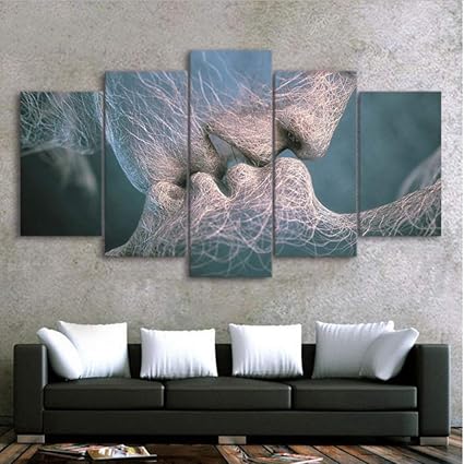 Gstbgbr Salone Di Bellezza Moda Hd Poster Stampato 5 Pezzi Quadri Su Tela Astratti Amore Baci Quadri Pittura Decorazione Arte Della Parete Decorazione Per Soggiorno Amazon It Casa E Cucina