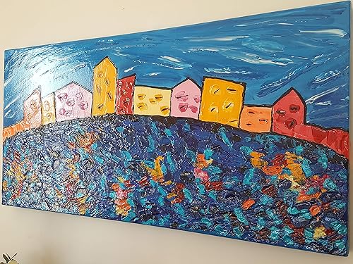Doron Arte Quadro Moderno Astratto Dipinto A Mano Telaio Gallery Bordi Dipinti Mare E Fiori 50x70x4 Cm Rif147 Amazon It Handmade
