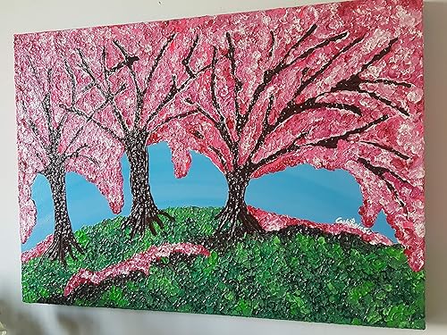 Doron Arte Quadro Moderno Astratto Dipinto A Mano Telaio Gallery Bordi Dipinti Pesco In Fiore Albero Paesaggio 50x70x4 Cm Rif112 Amazon It Handmade