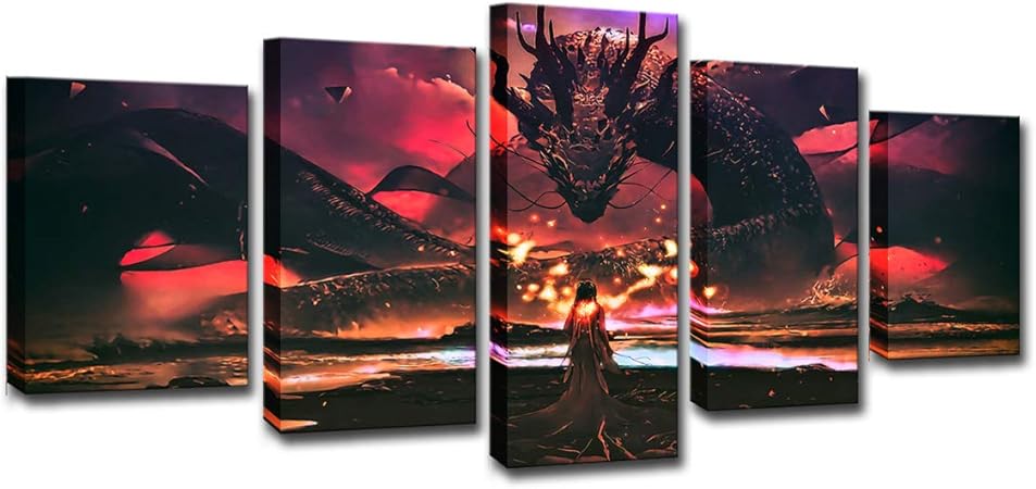 Flwym Quadri Modern 5 Bordo Parete Estetica Arte Mente Drago Fuoco Ragazza Decorazione Della Casa B5 Amazon It Casa E Cucina