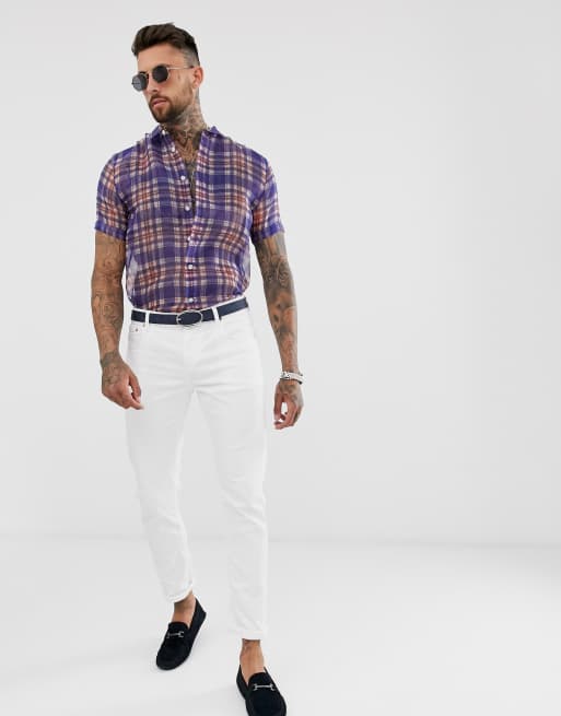 Jefferson Camicia In Manopesca Viola A Quadri Asos