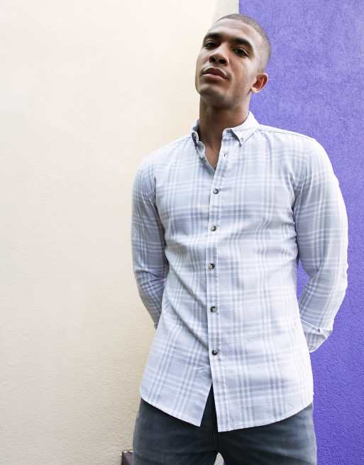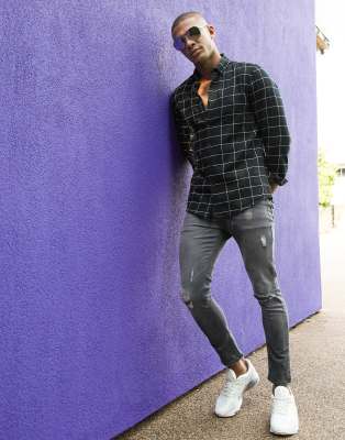 Asos Design Camicia A Quadri Skinny In Grigio Asos