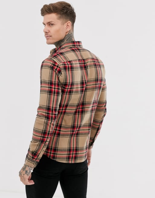 Asos Design Camicia A Quadri Stile Western Slim Elasticizzata Lavaggio Acido Rosso Asos Marroni Quadri Stileo It
