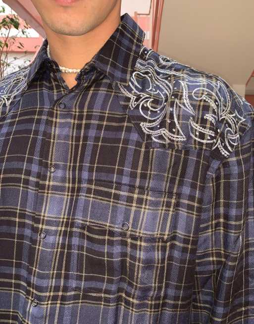 Asos Design Camicia A Quadri Stile Western Stile Anni 90 Oversize Con Decorazione Sulle Spalle Asos
