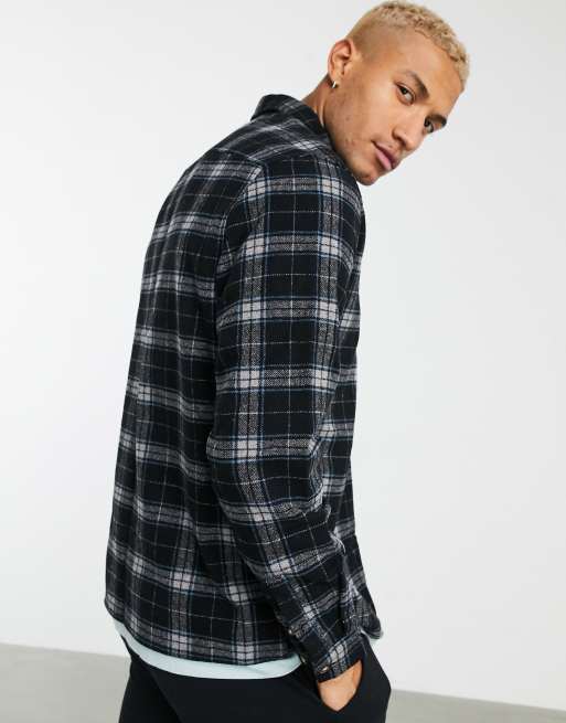 Asos Design Camicia Nera In Misto Lana A Quadri Asos