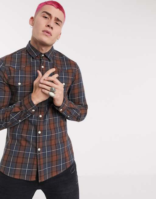 Asos Design Camicia Stile Western Slim A Maniche Lunghe Marrone A Quadri Asos