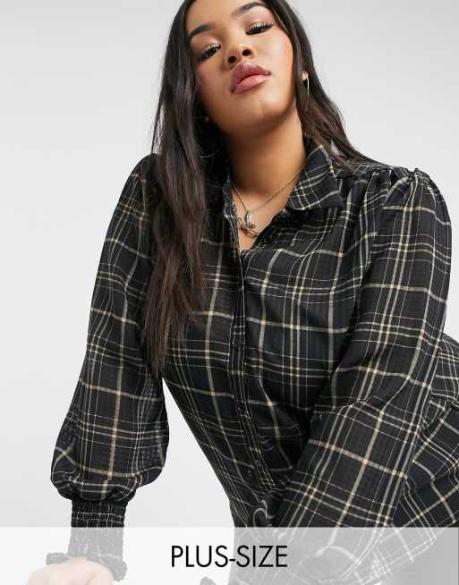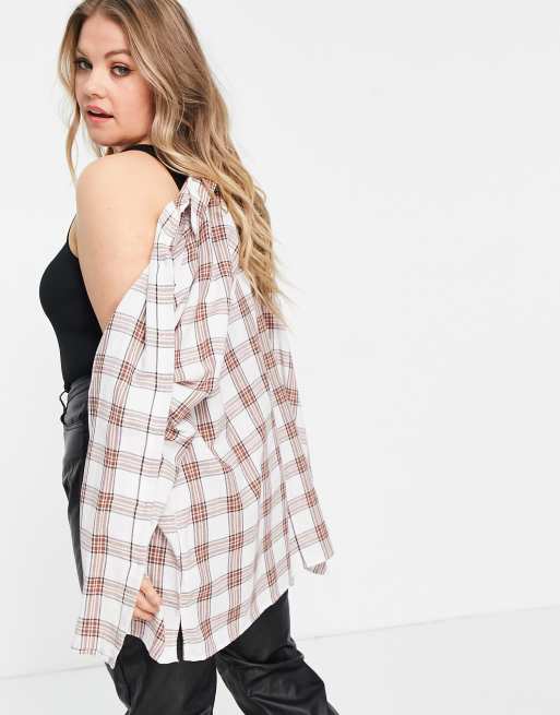 Asos Design Curve Camicia A Quadri A Maniche Lunghe Avorio E Cuoio Asos