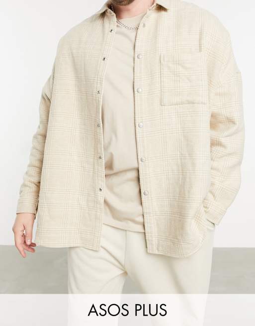 Asos Design Plus Camicia A Quadri Oversize In Misto Lana Beige Tono Su Tono Con Bottoni Asos