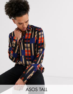 Camicia A Quadri Con Stampa Astratta Vestibilita Classica Asos Design Tall Navy Uomo
