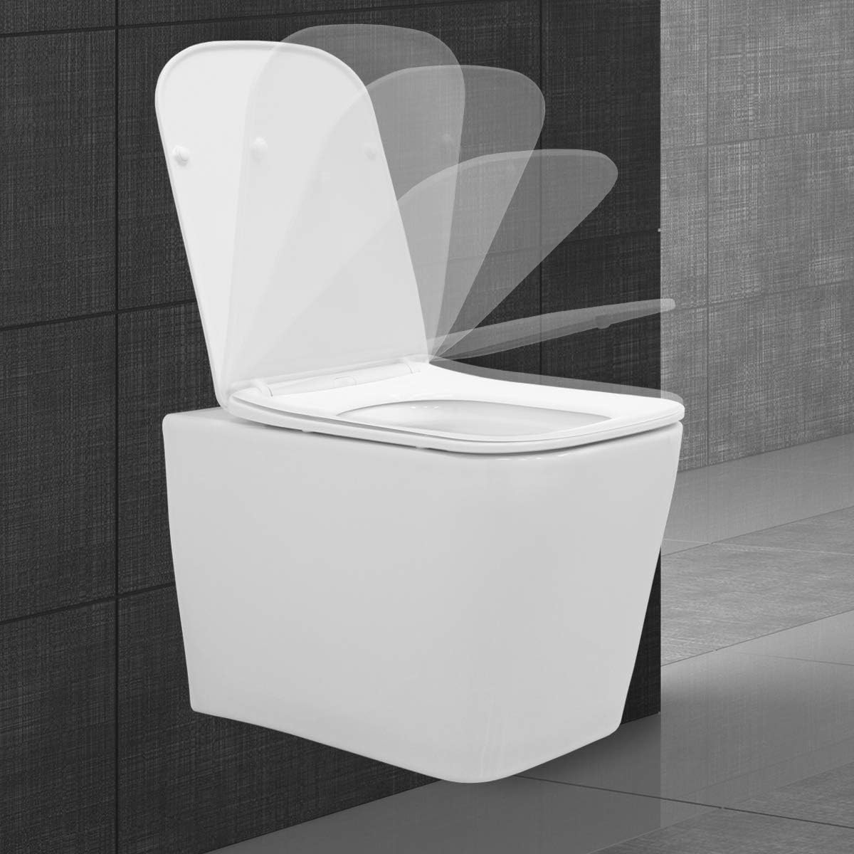 Ecd Germany Wc Sospeso Senza Bordo Quadrato In Ceramica Coprivaso Soft Close Sedile Del Water Rimovibile Bianco Sedile Toilette Sospeso A Muro Vaso A Parete Copriwater Chiusura Rallentata Attrezzature Per Bagni Attrezzature Per