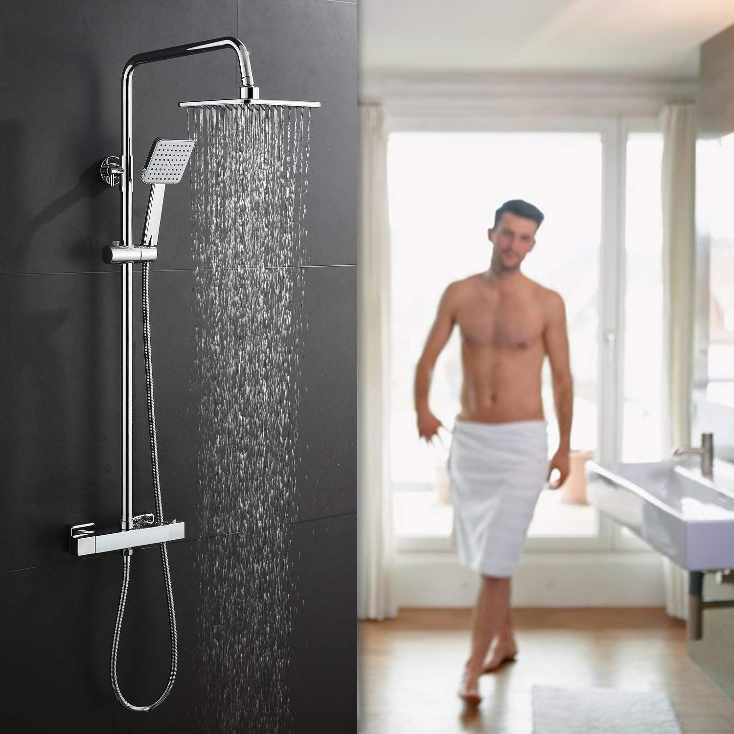 Colonna Doccia Con Miscelatore Termostatico Soffione E Doccetta Woohse Set Doccia Quadrato Sistema Doccia A Pioggia Colonna Doccia Termostatica Set Doccia Con Asta Doccia Regolabile Da 81 A 115 Cm Amazon It Fai