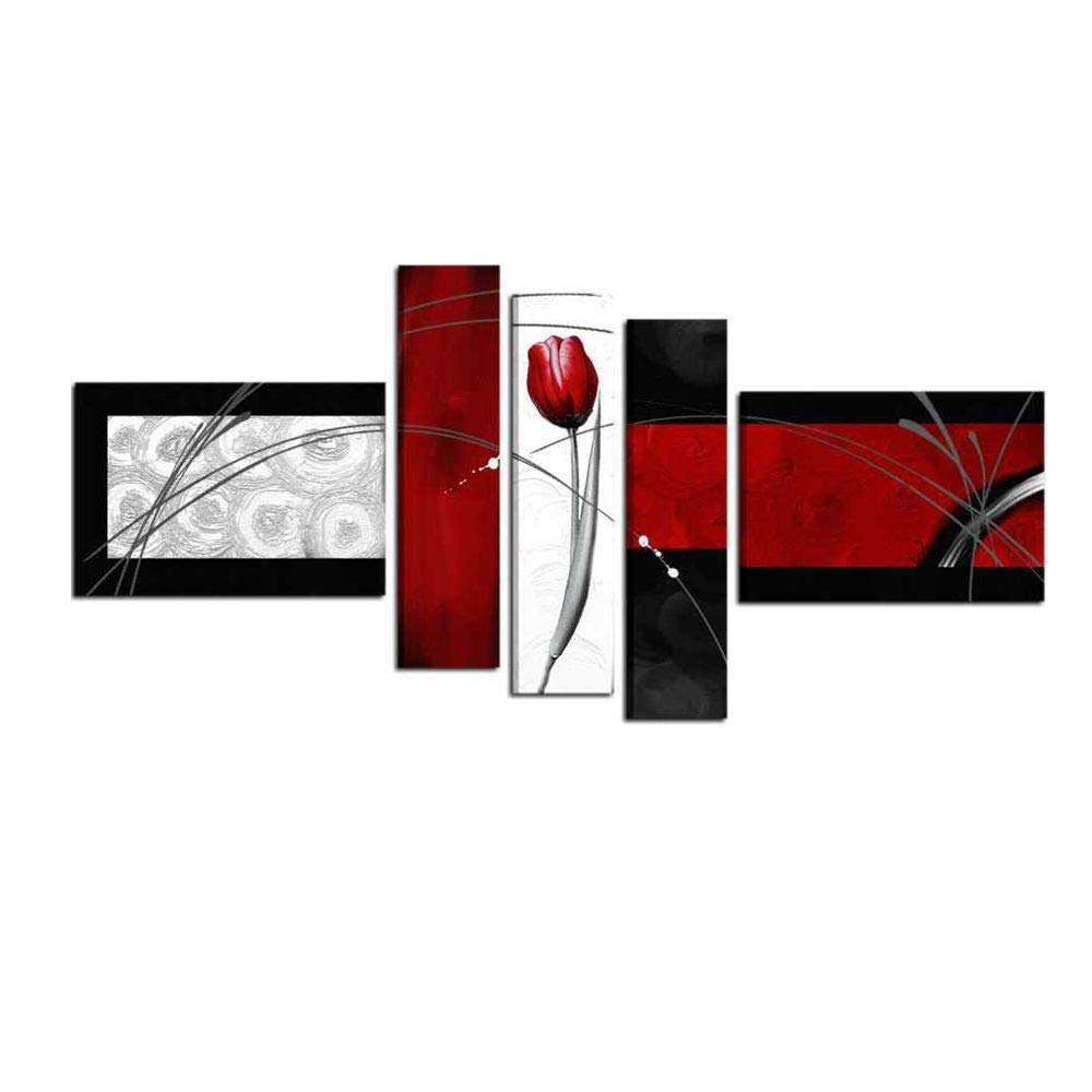 Quadri Moderni Componibili Astratti Dipinti A Mano Olio Su Tela Intelaiati Pronti Da Appendere Rosso Nero Con Fiore Con Certificato Di Artigianalita Alta Qualita Made In Italy Seval Casa E Cucina Dipinti