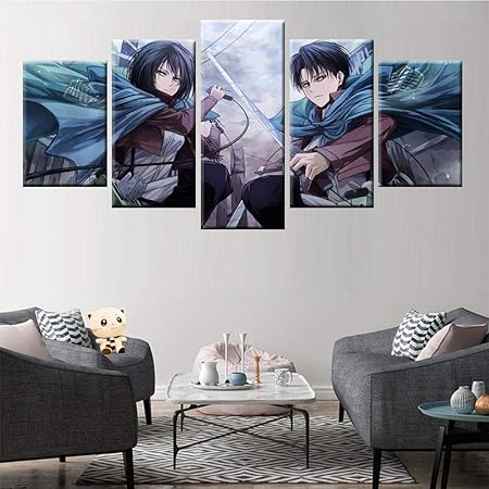 Decorsy Stampe E Quadri Su Tela Hd Che Attacca Il Gigante Mikasa Ackerman 5 Pezzi Stampe Su Tela Decorazioni Per La Casa Idee Regalo Donna Uomo Telaio Amazon It Casa E Cucina