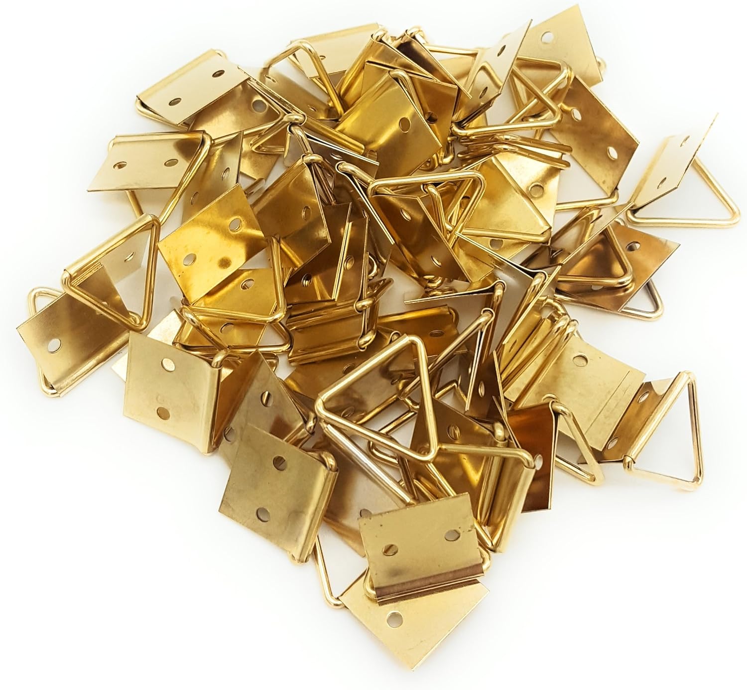 Abbiamo ancora delle attaccaglie snodate in acciaio ottonato assortite da uno a tre buchi ideali per appendere quadri. Attaccaglie dentate a ponticello in metallo finitura ottone da applicare alla cornice del quadro per mezzo di chiodini o semenze diversamente dai ganci per quadri fissi hanno il vantaggio di permettere l aggiustamento del quadro se questo non dovesse risultare perfettamente diritto sulla parete cosa che capita più frequentemente di quanto si possa immaginare. Questo genere di attaccaglie fisse a rondine si possono facilmente utilizzare oltre che per appendere quadri anche per specchi piatti orologi o cornici in legno. Attaccaglie per quadri a coda di rondine.