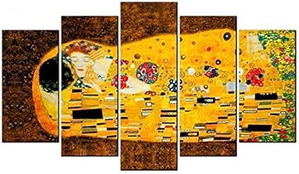 Deco Italia Quadro Klimt Il Bacio 5 Pannelli In Legno Da Appendere Anche Senza Chiodi 145 X 83 Cm Amazon It Casa E Cucina