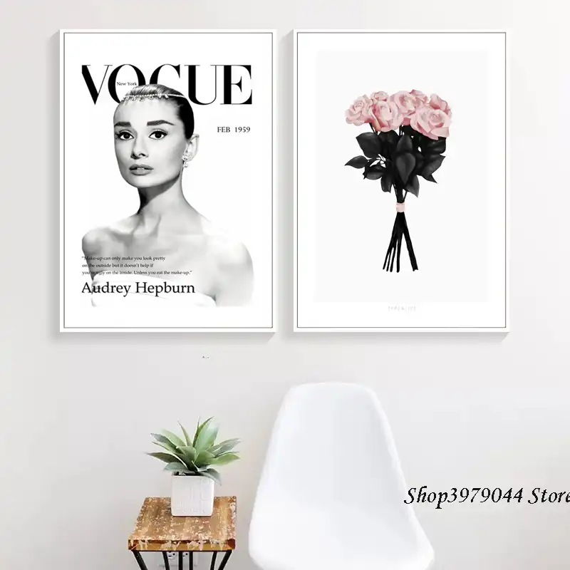 Audrey Hepburn Fashion Kanvas Lukisan Bunga Merah Muda Poster Nordic Gaya Mode Cetak Modern Dinding Gambar Untuk Dekorasi Ruang Tamu Aliexpress