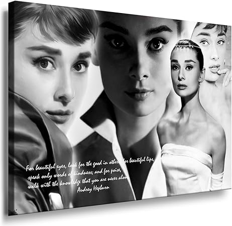 Aicedu Stampe E Quadri Nessuna Cornice Moderno Minimalista Nero Bianco Audrey Hepburn Ritratto Pop Film Art Print Poster Astratto Immagine Della Parete Tela 60x90cm Amazon It Casa E Cucina