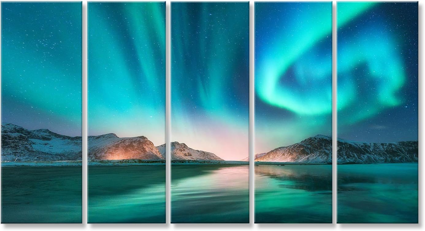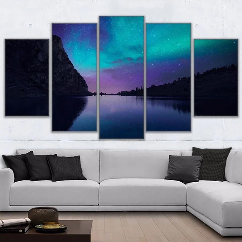 Hd Stampe Di Arte Della Parete Quadri Su Tela Quadro 5 Pezzo Aurora Borealis Luce Montagna Natura Riflessione Pittura Home Decor Poster Canvas Picture Wall Artreflection Painting Aliexpress