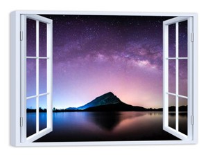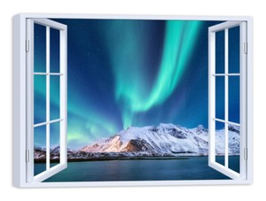 Quadro Stampa Su Tela Con Telaio In Legno Arredamento Finestra Aurora Boreale Ebay