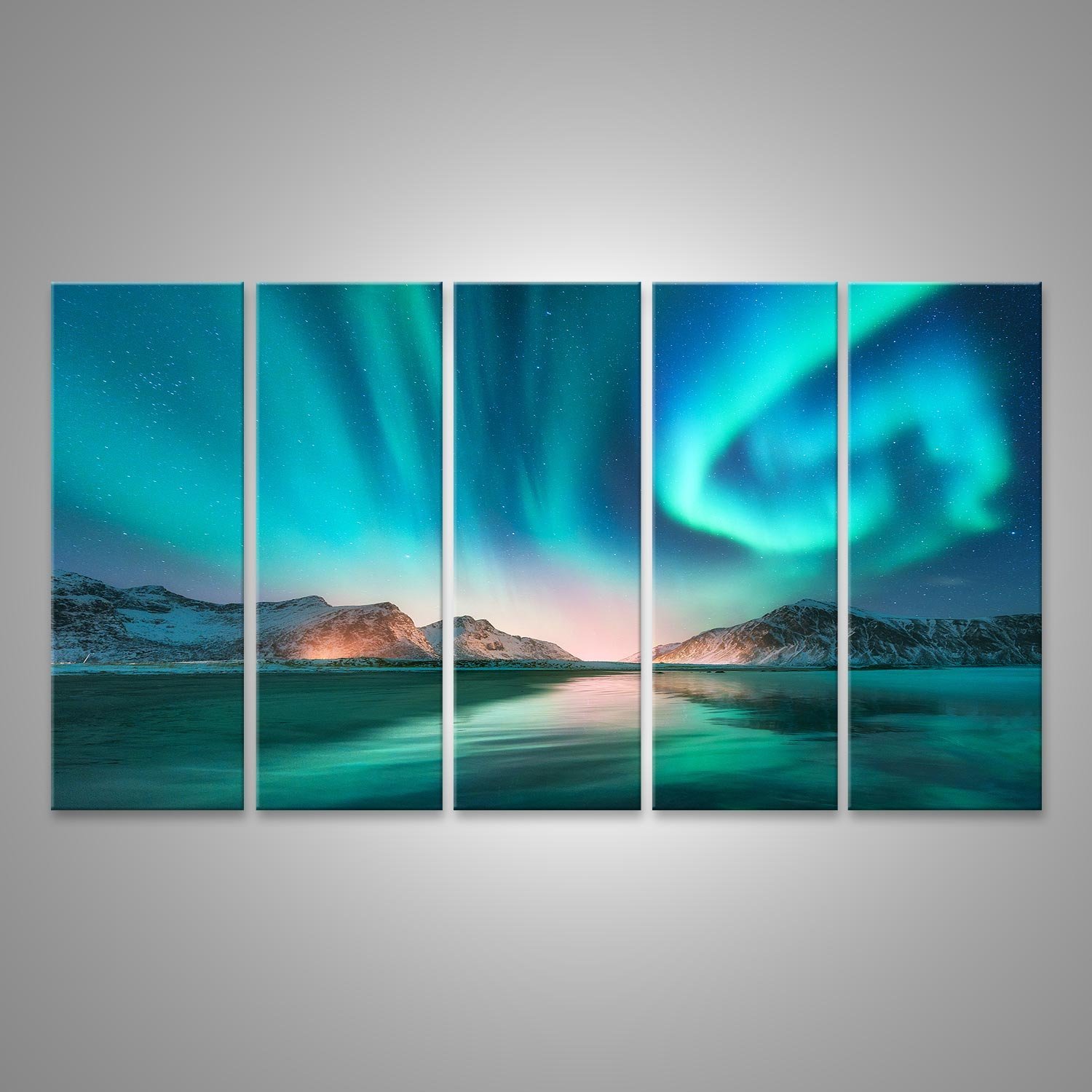 Quadro Decorativo Aurora Boreal Luzes Ilha 129x61 5pc Sala P 5p N38 Quadro Decorativo Aurora Boreal Luzes Ilha 129x61 5pc Sala Imperio Dos Quadros