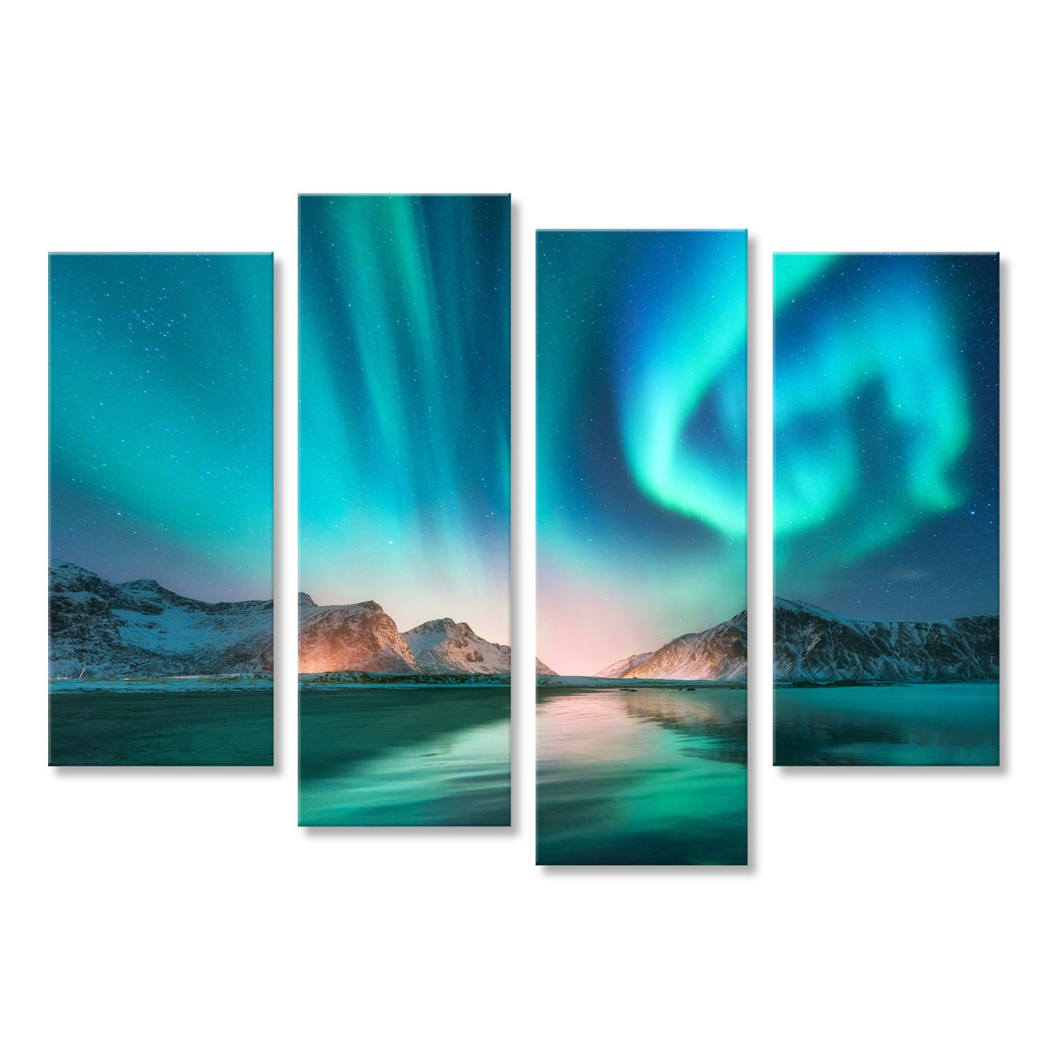 Quadro Mosaico Dividido Em 4 Partes Reto Aurora Boreal Aviao