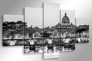 Quadro Moderno 5 Pz Roma Skyline B N 5 Pz Cm 150x90 Arredamento Stampa Su Tela Ebay
