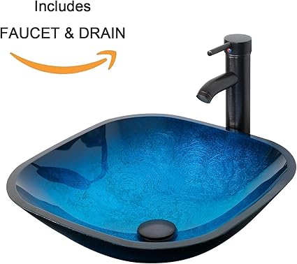 Brustlife 1 5 Gpm Lavandino Bagno Moderno Oceano Blu Quadrato In Vetro Temprato Combo Con Bagno Orb Rubinetto E Piletta Di Scarico Amazon It Fai Da Te