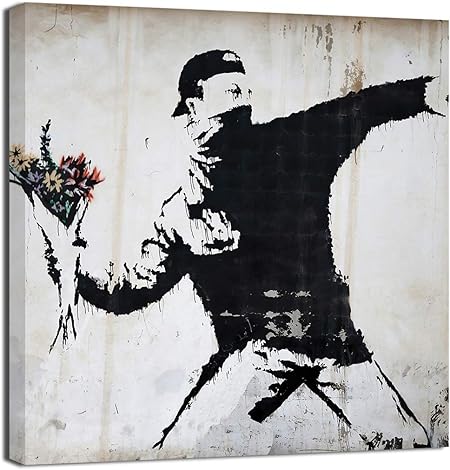 Canvashop Banksy Rage Flower Thrower Modern Paintings Living Room Square Print On Canvas With Frame 40x40 Cm Street Art Squares Small Bansky Works Amazon Co Uk Kitchen Home