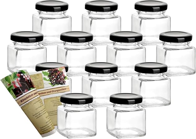 Gouveo Set Di 12 Vasetti Per Conserve Quadrati 50 Ml Con Tappo A Vite Colore Nero Amazon It Casa E Cucina
