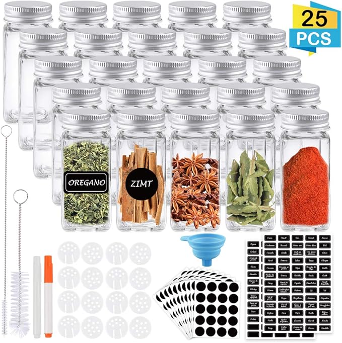 Cdwerd 25 Barattoli Quadrati Per Spezie In Vetro Con 1 Imbuto In Ebay
