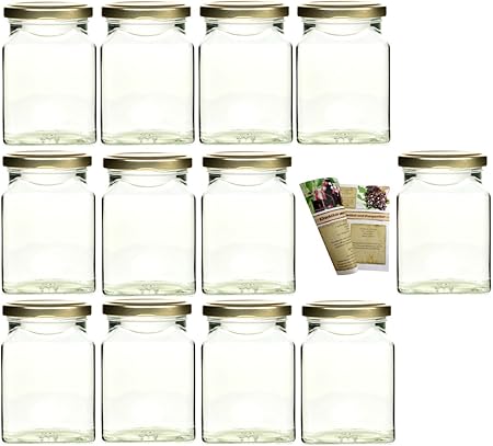 12 Barattoli Quadrati Da 314 Ml Incl Squadrati Vuote Fermaglio Oro E Flacone Discount Flash Ricetta Opuscolo Barattoli Barattoli Per Marmellata Bicchieri Spezie Conserve Vasetti Amazon It Casa E Cucina