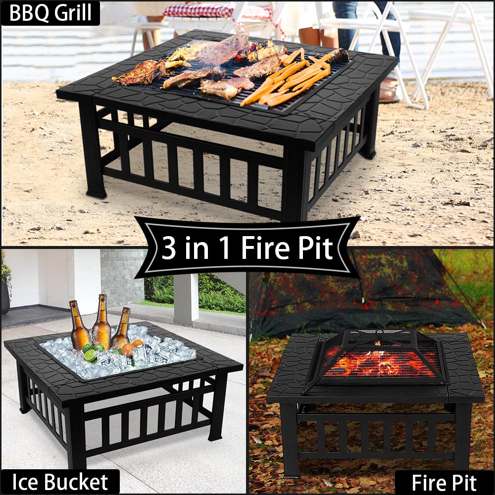 Fobuy Braciere Con Griglia Per Barbecue Tavolo Quadrato In Metallo Braciere Da Giardino Patio Barbecue Ghiaccio Con Copertura Impermeabile 3 In 1 Braciere Quadrato E Griglia Arredamenti Per Il Giardino