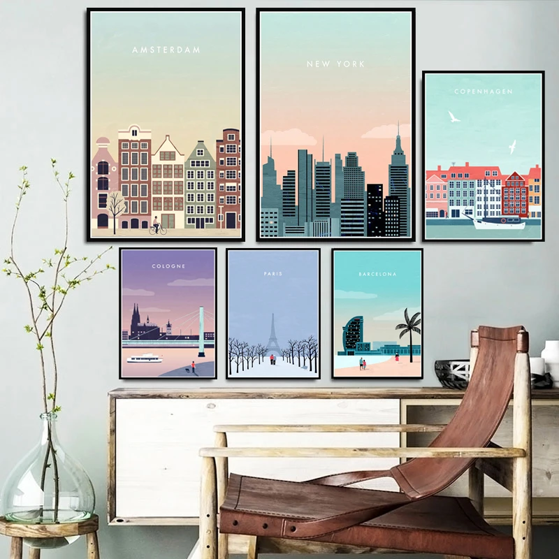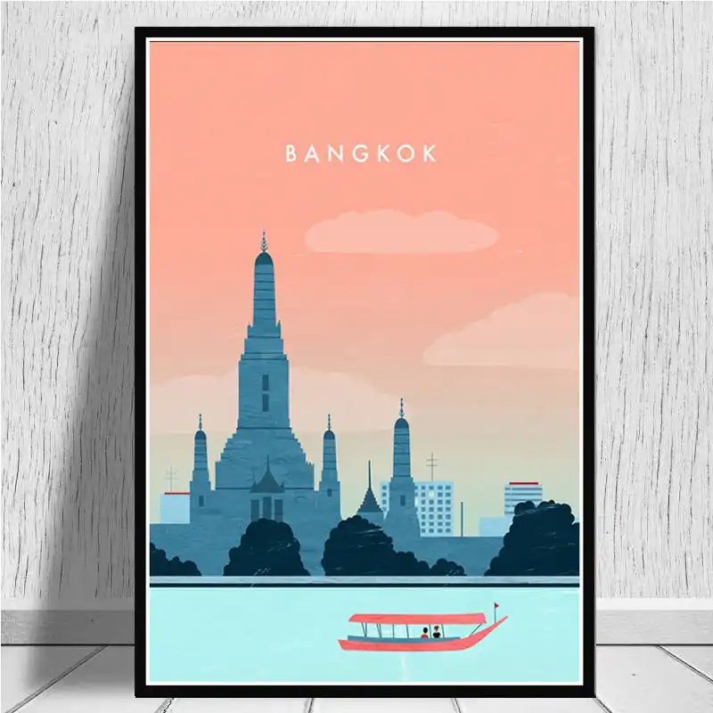 Bangkok Barcelona Travel City Amsterdam Barcelona Poster Prints Canvas Oil Painting Art Wall Pictures Decor Quadro Cuadros Painting Calligraphy Aliexpress