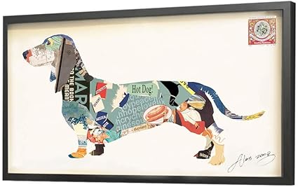 Kunstloft Frame Art 3d Collage Orgoglio Bassotto 121x61cm Interamente A Mano Con Carta Da Parati Vintage Cane Bassotto Colorato 3d Decorazione Quadro Arte Disegno Immagine Vetro Temperato Amazon It Casa