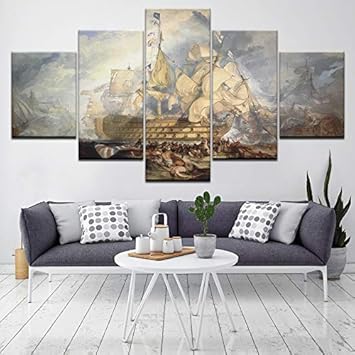 Quadro Su Tela A 5 Pannelli Quadro Modulare Opera D Arte Battaglia Di Trafalgar Marina Reale Britannica Contro Navie Francese E Spagnola Amazon It Fai Da Te
