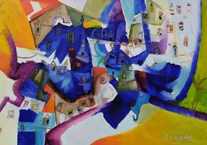 Bengez Miljenko Citta Blu Serigrafia Su Tela 80 X 150 Cm Serigrafia Arte Tela