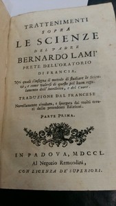Trattenimenti Sopra Le Scienze Del Padre Bernardo Lami 1750 Bernard Lamy Ebay