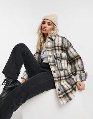 Bershka Camicia Giacca Lunga In Cotone Spazzolato Marrone A Quadri Crema Asos Marroni Quadri Stileo It