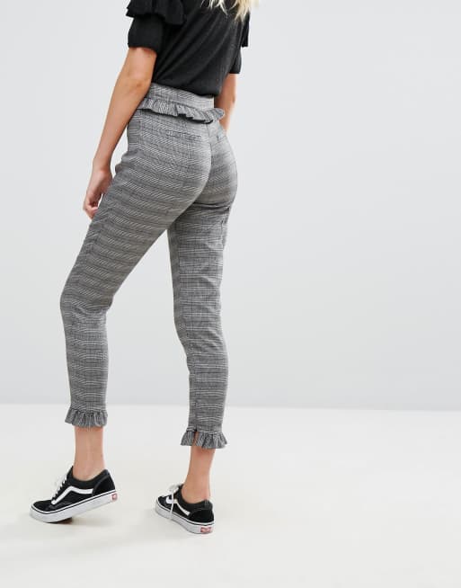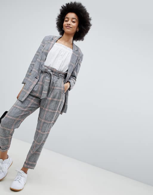 Bershka Pantaloni A Vita Alta Grigi A Quadri Con Cintura Asos