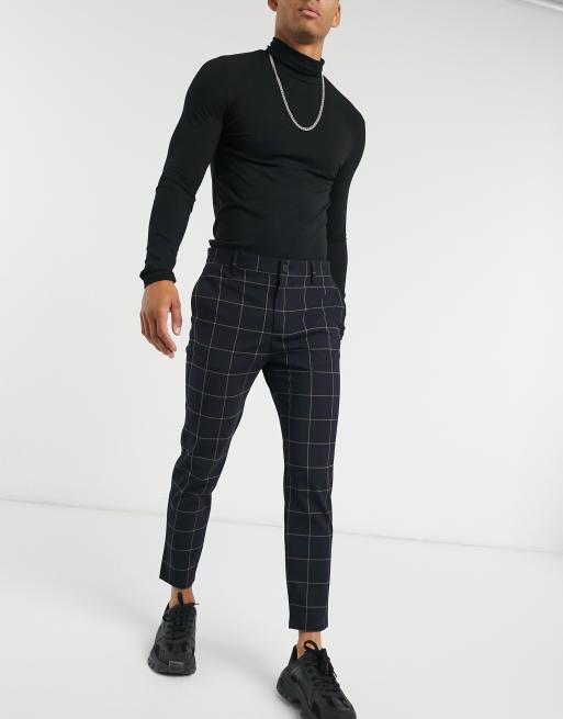 Bershka Pantaloni Skinny Blu Navy A Quadri Asos